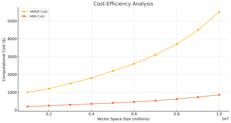 Cost-Efficiency: Maintaining high performance with HNSW requires substantial computational resources, leading to increased operational costs.
